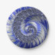 Abstract Blue Fractal Spiral Paper Plates