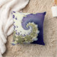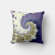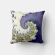This square pillow features an abstract spiral fractal in white, blue and gold.