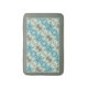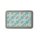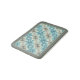 Abstract blue, grey snowflake pattern with border bath mat. It showcases a geometric pattern made of abstract snowflakes in blue, grey and black. There is a grey border around it.