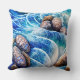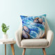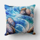 Abstract Blue Ocean Wave Marble Agate Gold Art Throw Pillow