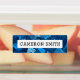 Waterproof property labels with customizable name on an abstract blue pattern. Great for labelling your children's belongings