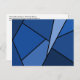 Inspired by stained glass, this stylish geometric design contains polygons in various shades of blue outlined in black. A light blue triangle slashes in from the upper right with an array of progressively darker blue quadrangles and other shapes spiralling around it from light to dark. Two dark blue shapes ground the left side of the original design.