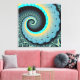 Abstract Blue Turquoise Orange Fractal Art Spiral Canvas Print