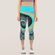 Abstract Blue Turquoise Orange Fractal Art Spiral Capri Leggings