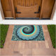 Abstract Blue Turquoise Orange Fractal Art Spiral Doormat