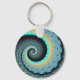 Abstract Blue Turquoise Orange Fractal Art Spiral Keychain