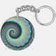 Abstract Blue Turquoise Orange Fractal Art Spiral Keychain