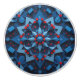A captivating abstract array of shapes in various hues of blue are interspersed with vibrant red dots.