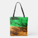 Abstract blurry spotted pattern in orange green tote bag