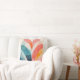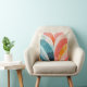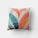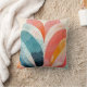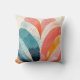 A modern, colourful abstract pattern throw pillow in shades of teal, pink, green, orange and cream. The design is on both sides of the pillow and would make a striking, modern addition to any home.