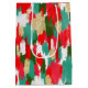 Get ready to celebrate Christmas in merry and bright maximalist style with this abstract brush stroke gift bag in red white and green with faux gold glitter. Make an unforgettable artistic statement under your Christmas tree this holiday season!
