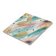 This seamless abstract pattern ceramic tile features broad, expressive brushstrokes in soft shades of teal, pink, and light blue over a light cream background. Scattered throughout the design are clusters of dots—some solid in deep blue or black, others shimmering in gold with textured, net-like detailing. Additional gold specks and larger golden dots bring a touch of elegance and dynamic visual interest. The result is a modern, artistic composition that’s both vibrant and refined.