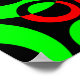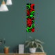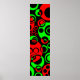 An exciting and fun abstract design made up of circular bubble like shapes in vibrant contrasting red and green with black. This design was originally made for a skateboard but also makes an excellent poster, it's narrow width to height ratio also makes it ideal for hanging in areas where space is limited, e.g. between doorways.