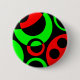 A fun abstract design made up of circular bubble like shapes in vibrant contrasting red and green with black.