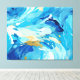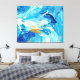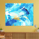 This stretched canvas wall art is shown with a colourful abstract art print.