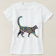 The colorful cat design on this shirt is great. I have cats, so this was a natural choice. I usually take an XL in ladies tees, but this one fits too snugly. I'm going to give it to thinner my sister. The material is a thin, stretchy cotton which will be ideal for hot summer days. The light blue is very pretty. I am short and this shirt was much too long. All the more reason to pass it to my tall sister. Very good printing on the light blue shirt. I love this colorful cat design. I'm just disappointed in the fit and the thin material.