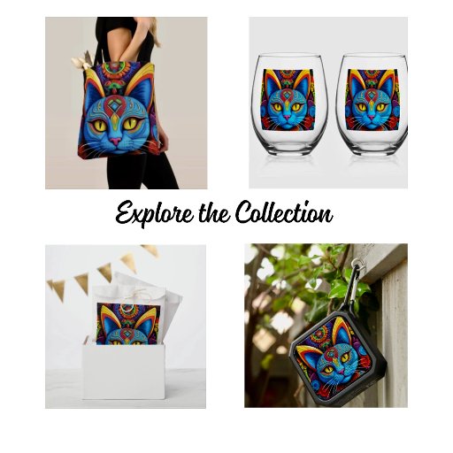 Abstract Cat With Yellow Eyes Designed by Susan Steinmann