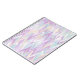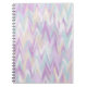 An abstract chevron design in a purple, turquoise, ivory and white palette.