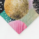 This seamless abstract pattern blanket features a lively arrangement of circles in varying sizes and textures over a dreamy gradient background. The circles include textured brush-painted styles in pink and teal, shimmering gold glitter dots, and black circles speckled with white for a starry or confetti-like effect. Set against a vibrant gradient wash of pink, orange, yellow, blue, and green tones, the design is bold, artistic, and full of playful energy—perfect for modern, creative, or celebratory themes.