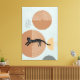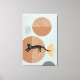 Abstract circles and arches with moody black cat. Colours of cream, dusty blue, terracotta and black.
