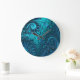 Abstract Colourful Blue & Teal Spiral Pattern Large Clock