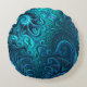 Abstract Colourful Blue & Teal Spiral Pattern Round Pillow
