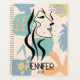 Abstract colourful design with gold, pink, blue and turquoise irregular shapes and woman face line art. This design is for everybody who likes abstract art. You can easily customize this item changing the name and date.