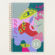 Modern abstract boho trendy colourful art print and artistic 2023 monthly weekly planner. Unique green pink red graphic design with symbols, eyes, leaves, shapes, spots. Add initials, name, monogram, year Gift idea for women young adults, ladies, girls, designers, millenials, artists, decorators, teachers for birthdays, christmas, holidays , new home, new room, home staging.