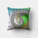 This beautiful throw pillow features an abstract spiral fractal gradient design in shades of green, yellow, purple and white.