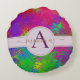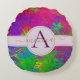 Abstract Colourful Tie Dye Pattern Monogram Name Round Pillow