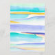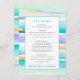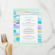 Abstract colourful tropical tidal waves event or wedding menu. Perfect for a minimal or modern beach art tropical or coastal sea wedding or sit down four-course dining event. Edit this four-course menu with your own meal options. Other matching items are available. Original abstract art tropical tide lines in aqua teal, yellow, blue and white painted with ink and gouache paint and designed by Sarah Trett for www.mylittleedenweddings.com