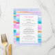Abstract colourful tropical tidal waves event or wedding menu. Perfect for a minimal or modern beach art tropical or coastal sea wedding or sit down four course dining event. Edit this four course menu with your own meal options. Other matching items available. Original abstract art tropical tide lines in aqua teal, pink, orange and white painted with ink and gouache paint and designed by Sarah Trett for www.mylittleedenweddings.com