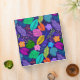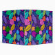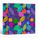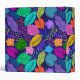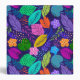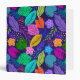Abstract colourful tropical pattern design with leaves & flowers on dark purple background