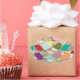 A confetti tapestry of colours form this abstract design. Background in pale gold foil.