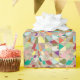 A confetti tapestry of colours form this abstract design. Background in pale gold foil.