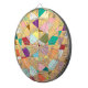 A confetti tapestry of colours form this abstract design. Background textured sun burst pattern.