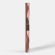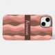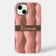 Horizontal waves in coral and salmon pink, with dark dusty rose and rose taupe accents, creates a modern and beautiful phone case. Personalize with your name in complementary coral on a dark brown ribbon.