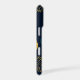 Fun abstract pattern of moon and stars on a dark blue background with printed gold foil accents.