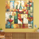 Bring warmth, rhythm, and modern sophistication to your space with this richly textured abstract still life. Composed in a cubist-inspired grid, the artwork blends wine glasses, fruit, and architectural forms into a harmonious mosaic of color and shape. Earthy ochres, deep reds, soft creams, and muted blues create a timeless palette that feels both contemporary and classic.