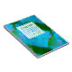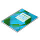 Abstract background with superposed coloured squares (colours: turquoise blue and green) and funny customizable lettering on half-transparent white tag. You can easily change text (font, colour,size and position) by clicking the customize button. Graduation guest book.