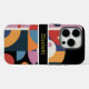 Custom Name Modern Abstract Geometric iPhone 16 Pro Cases features black, blue orange and red, pink watercolor geometric shapes with stripes and your personalized name in modern golden script. Personalize by editing the text in the text box below.