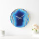 Abstract deep blue and gold marbleized geode large clock