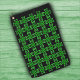 This golf towel is a black with an abstract design of an Irish Celtic knot pattern in bright green with intertwined loops.