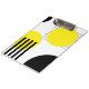 Abstract design illustration with geometrical (circles and stripes) shapes decoration in yellow and black colours on white background.