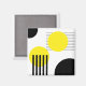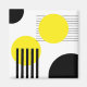Abstract design illustration with geometrical (circles and stripes) shapes decoration in yellow and black colours on white background.