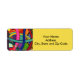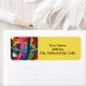 This return address label by artist Carolyn Fagg uses bright colours and mostly acute angles to brighten up all your postal envelopes and packages. Simply edit the text and put in your own return address. You might also use these as book tags to identify your book or other personal property.