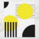 Abstract design illustration with geometrical (circles and stripes) shapes decoration in yellow and black colours on white background.