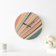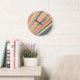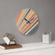 Abstract simple retro style design with blue, yellow, beige, turquoise, pink, black, brown colours hand drawn diagonal stripes decoration on pink and turquoise background