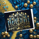 Abstract Drawing of Menorah Gold Blue Holiday Card