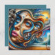 At its heart, a beautiful, stylized face emerges, adorned with piercing blue eyes that draw you into its intricate details. Swirls of vibrant color – blues, oranges, pinks, and golds – flow outwards, creating a dynamic sense of movement and energy. Hidden within the flowing lines, subtle, almost ghostly faces and forms can be discovered, adding layers of depth and mystery.